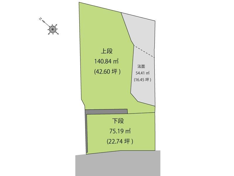 〇ひろいです♪敷地に高低差あり、上段42.6坪、下段22.74坪、法面16.45坪です。自家製の「野菜作り」や「ハーブ造り」「日本庭園造り」・・・夢は広がります♪