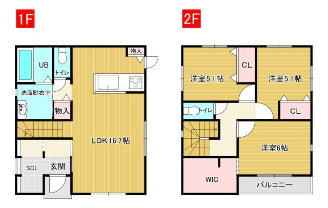 LDK 16.7帖 / 洋室 5.1帖 / 洋室 5.1帖 / 洋室 6.0帖 / |