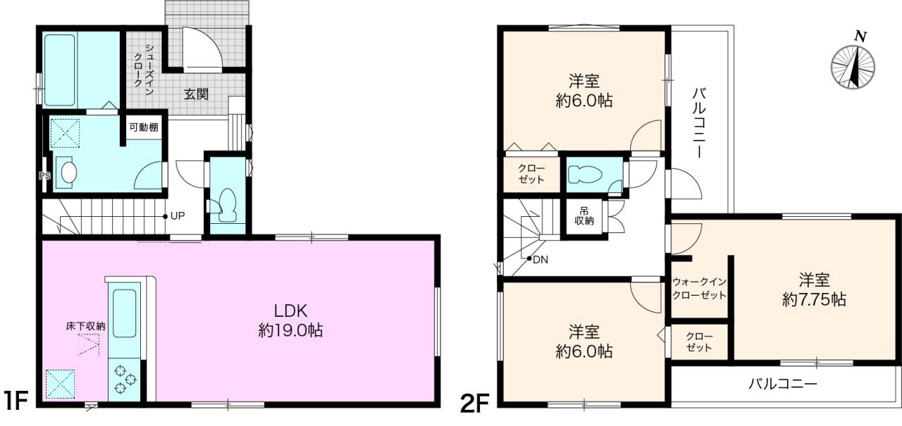 LDK 19.0帖 / 洋室 7.7帖 / 洋室 6.0帖 / 洋室 6.0帖 / |