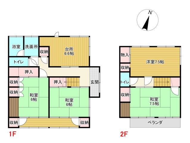 DK 6.6帖 / 和室 6.0帖 / 和室 6.0帖 / 洋室 7.5帖 / 和室 7.5帖 / |