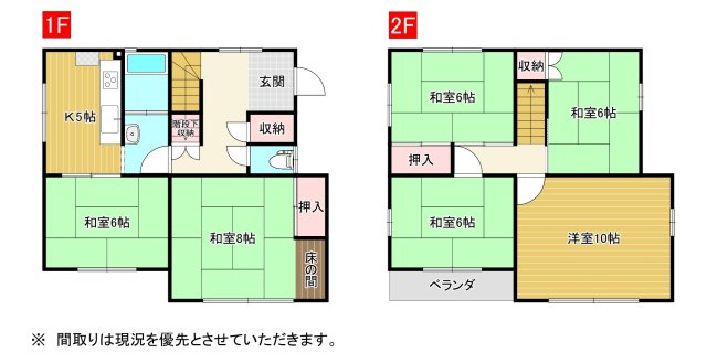 K 5.0帖 / 和室 6.0帖 / 和室 8.0帖 / 洋室 10.0帖 / 和室 6.0帖 / 和室 6.0帖 / 和室 6.0帖 / |