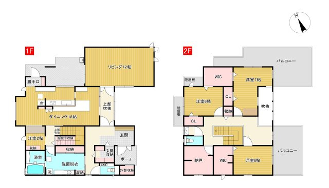 DK 18.0帖 / L 12.0帖 / その他 2.0帖 / 洋室 7.5帖 / 洋室 6.0帖 / 洋室 6.0帖 / S(納戸) 4.5帖 / |