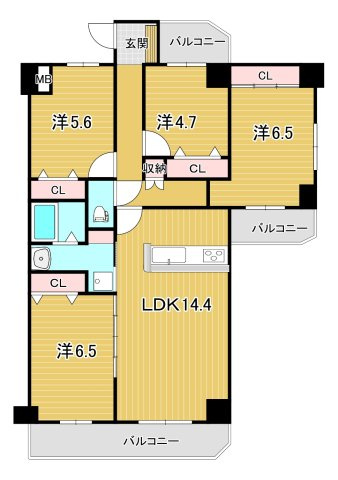 LDK 14.4帖 / 洋室 6.5帖 / 洋室 6.5帖 / 洋室 5.6帖 / 洋室 4.7帖 / |