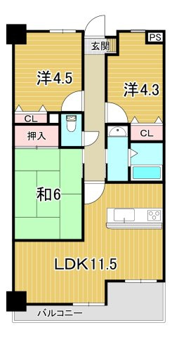 LDK 11.5帖 / 和室 6.0帖 / 洋室 4.3帖 / 洋室 4.5帖 / |